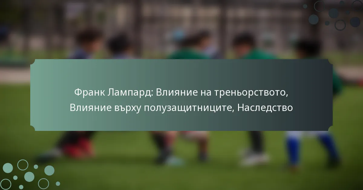 Въздействието на Франк Лампард върху футбола е отбелязано с акцент върху развитието на играчите, тактическата гъвкавост и силния фокус върху динамиката на средната линия. Неговият подход е повлиял както на индивидуалните играчи, така и на стратегиите на отборите, оставяйки трайно наследство в треньорската сфера.