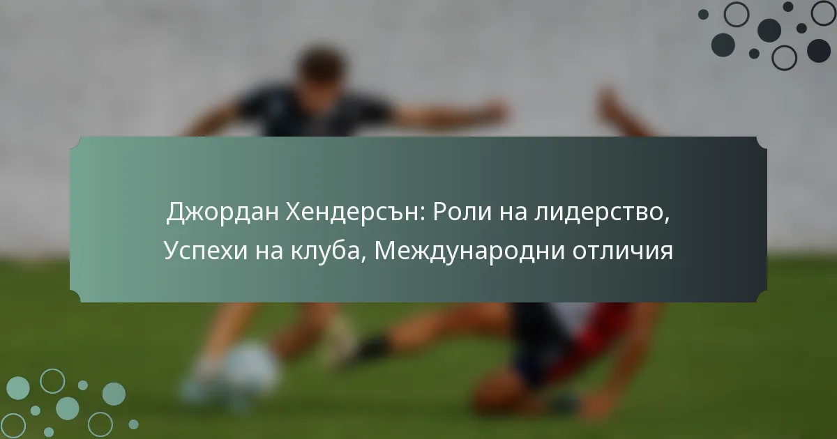 Джордан Хендерсън се утвърди като виден лидер във футбола, като капитан на Ливърпул ФК и значително влияе на динамиката на отбора и развитието на играчите. Неговият мандат в Ливърпул е белязан от забележителен успех на клуба, включително спечелването на титлите от Висшата лига и Шампионската лига на УЕФА. Освен това, приносите на Хендерсън към националния отбор на Англия са от съществено значение, демонстрирайки неговото лидерство по време на важни международни турнири.